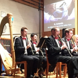 Charaktere von unterschiedlichen Göttern musikalisch interpretiert Im zweiten Konzertteil wurden die Besucher auf den Götterolymp mitgenommen. Das Werk «El Olimpo de los Dioses» des jungen spanischen Komponisten Óscar Navarro beschreibt in zehn Sätzen mit unterschiedlichsten Atmosphären verschiedene griechische Götter. Während «Artemis – die Göttin der Natur und der wilden Tiere» ein ruhiger Satz mit Vogelgezwitscher war, bebte bei «Poseidon – der Gott des Meeres und der Erdbeben» der ganze Saal durch die Vibrationen der tiefen Instrumente. Mit «Zeus und Hera – König und Königin der Götter» spielte das Blasorchester Musik, die den Göttern mehr als würdig war.